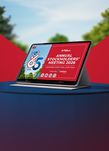 The information disclosed / discussed / presented, and any image / video taken during the ASM are private and confidential. However, PSBank has the right to disclose the information or image / video to any government regulatory agency for purposes of complying with regulatory / legal requirements, or to any media entity or third parties for media releases in order to promote its interest, and with full regard to the data privacy rights of the participants.