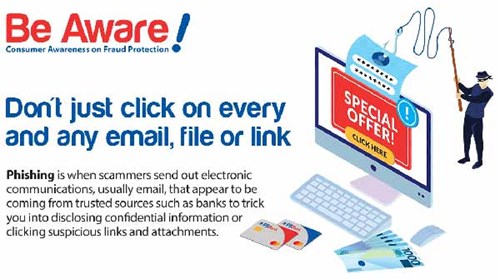Be very cautious of emails that are urging you to share confidential information or that contain alarming messages. Verify suspicious emails by contacting the institution or Bank mentioned in the email or letter to validate if the communication is legitimate. Do not immediately disclose the information being asked from you. |